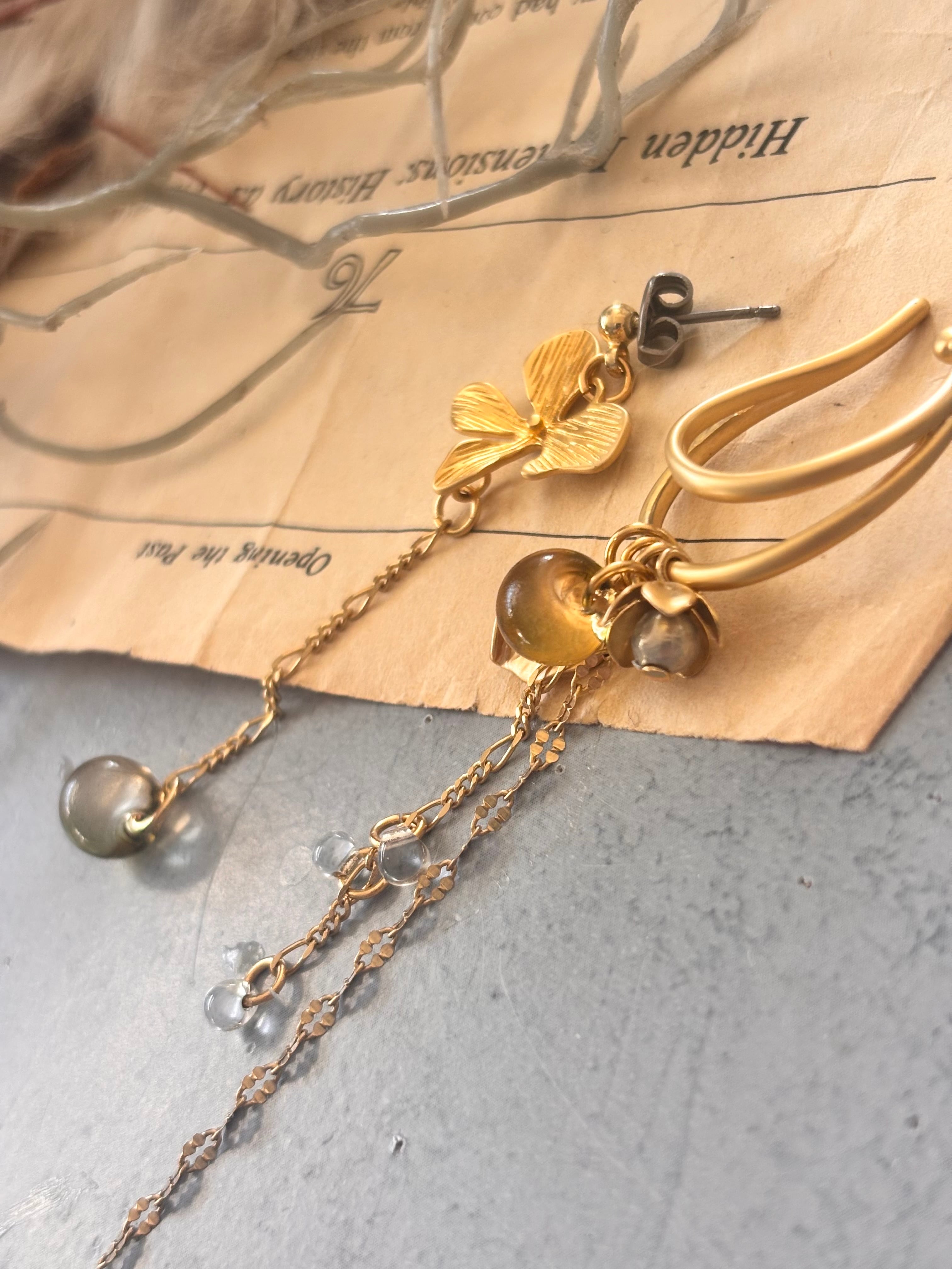 アンバーカラーとお花のアシンメトリーイヤーカフ
